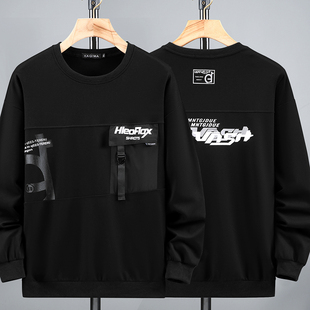 圆领无帽青少年w 款 MZWZ卫衣男女2025新款 连帽早秋黑色外套秋季