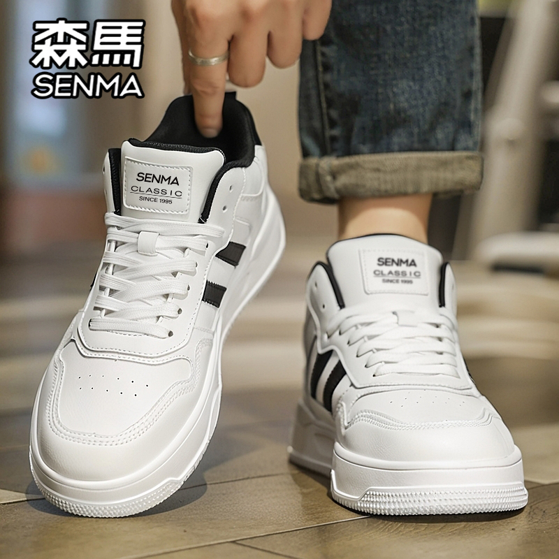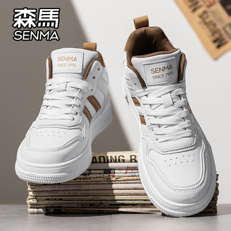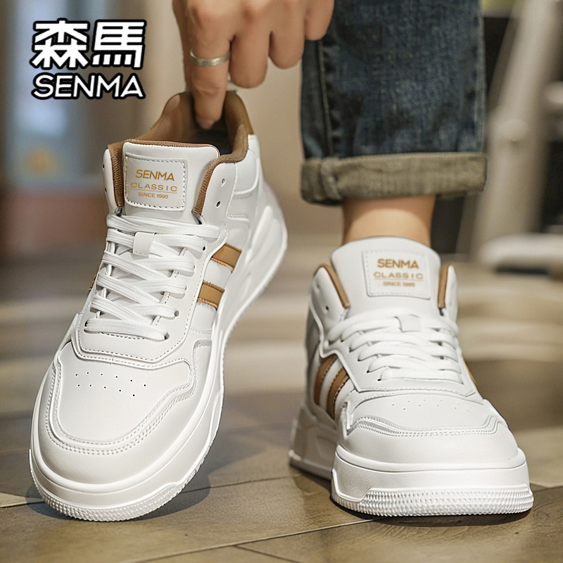 百搭高帮板鞋 新款 男士 休闲皮鞋 森马男鞋 运动增高小白潮鞋 2025秋季
