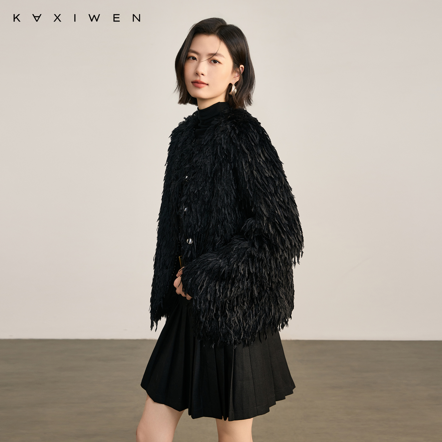 佧茜文法式 气质轻奢感重工钉珠上衣女 羽毛纱外套2025秋冬新款