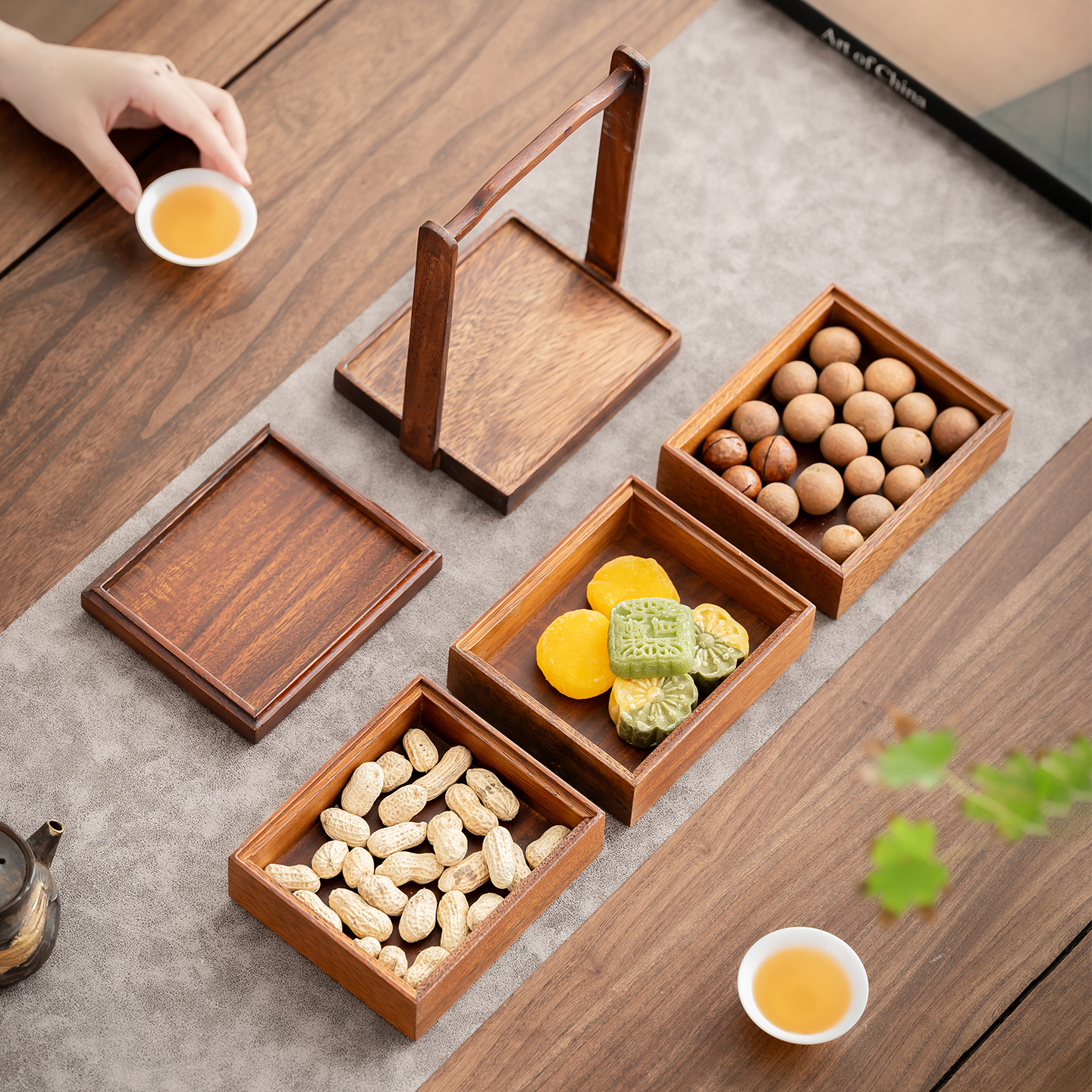 新中式 食盒下午茶盒木质手提盒坚果盘 果盘点心零食收纳盒便携式