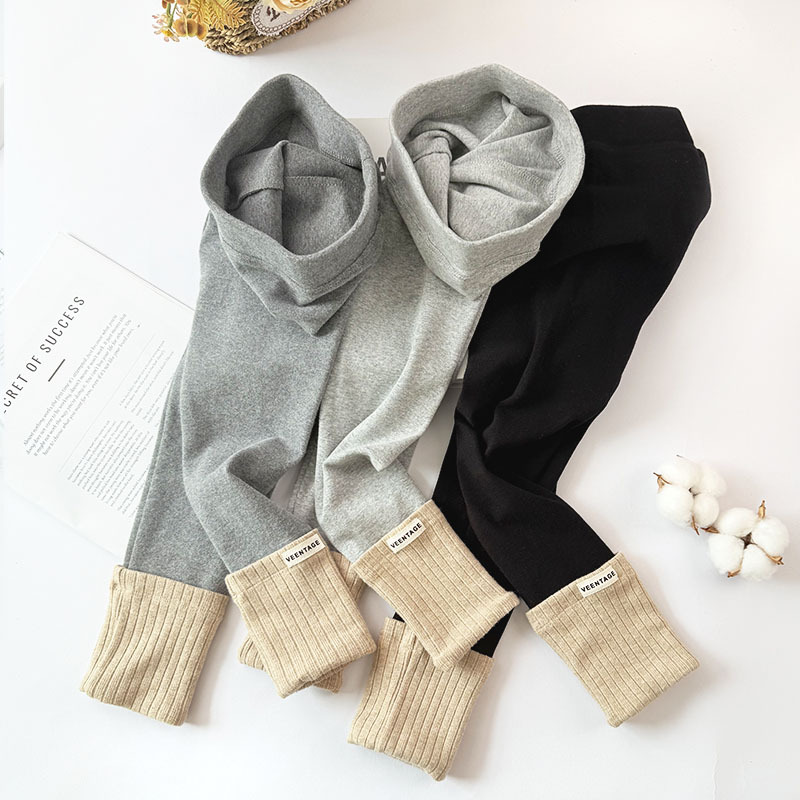 裤 女童堆堆袜打底裤 儿童修身 子女宝宝时髦拼接裤 秋冬纯棉中大童裤