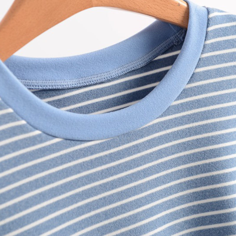 女士套装 青少年磨毛圆领保暖大码 舒绒条纹加厚内搭抓绒秋衣秋裤