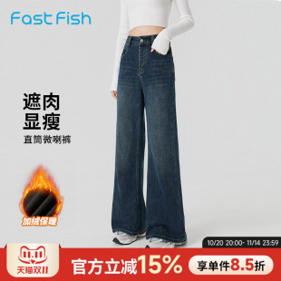 黑灰微喇牛仔裤 女2025年春秋高腰显瘦加绒复古弹力阔腿马蹄喇叭裤