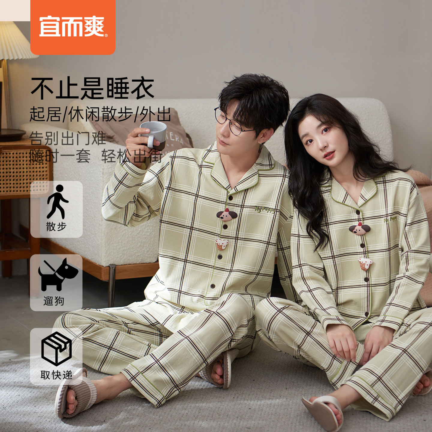 慕斯绒家居服保暖情侣秋冬套装 ubras贴贴系列 睡衣 刘雯同款