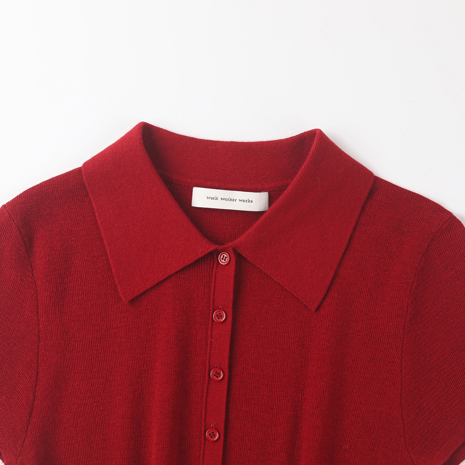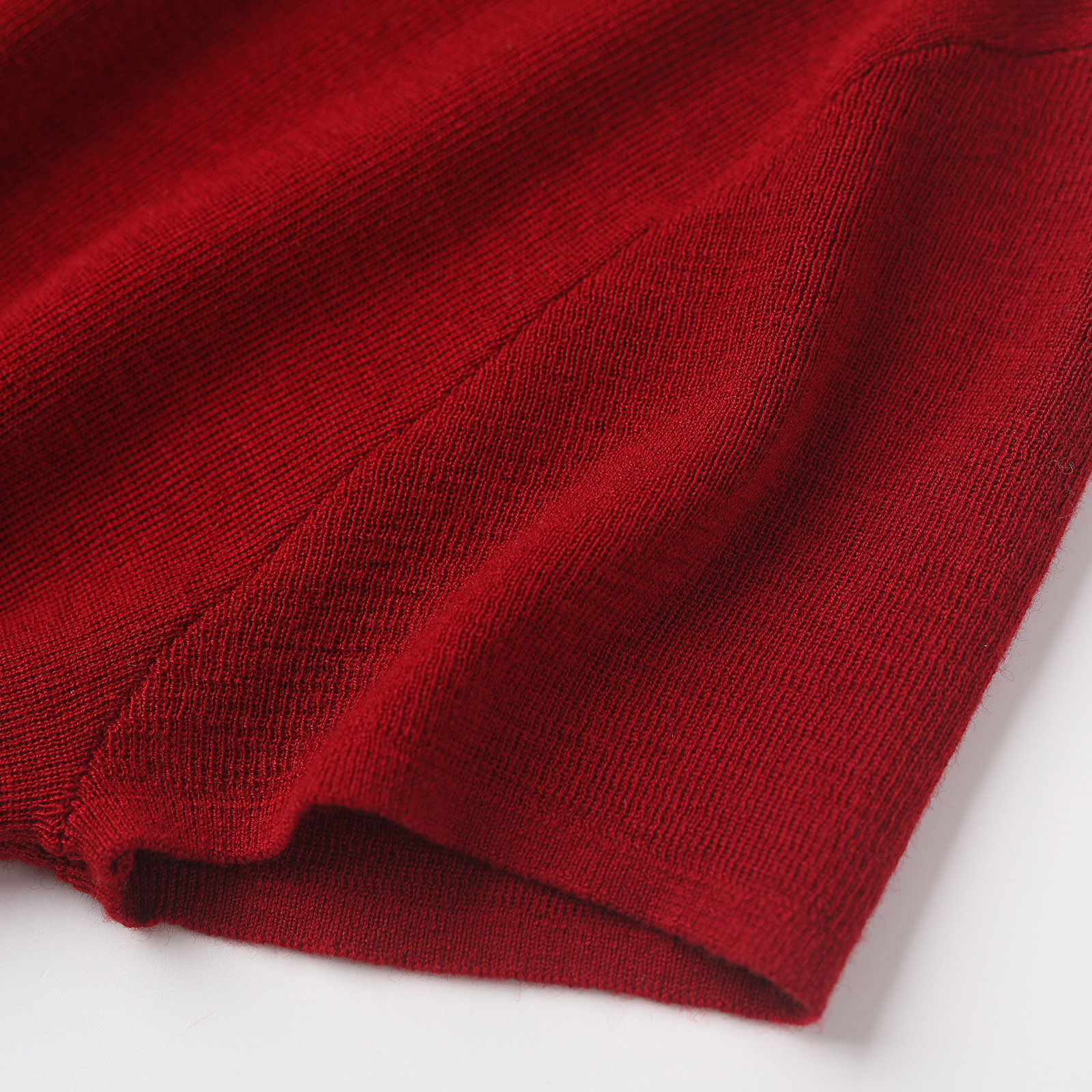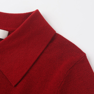 新品 2025秋季 红色简约气质休闲上衣女 try100%羊毛polo针织衫 wana