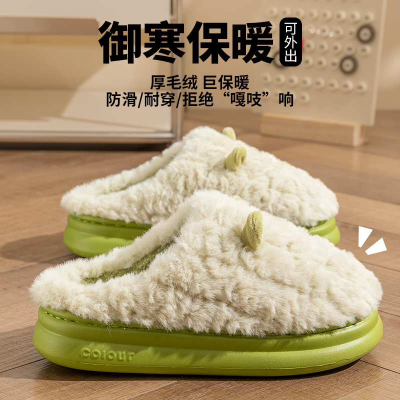 室内居家加绒保暖厚底防滑棉鞋 女士冬季 男外穿 包跟棉拖鞋 2025新款