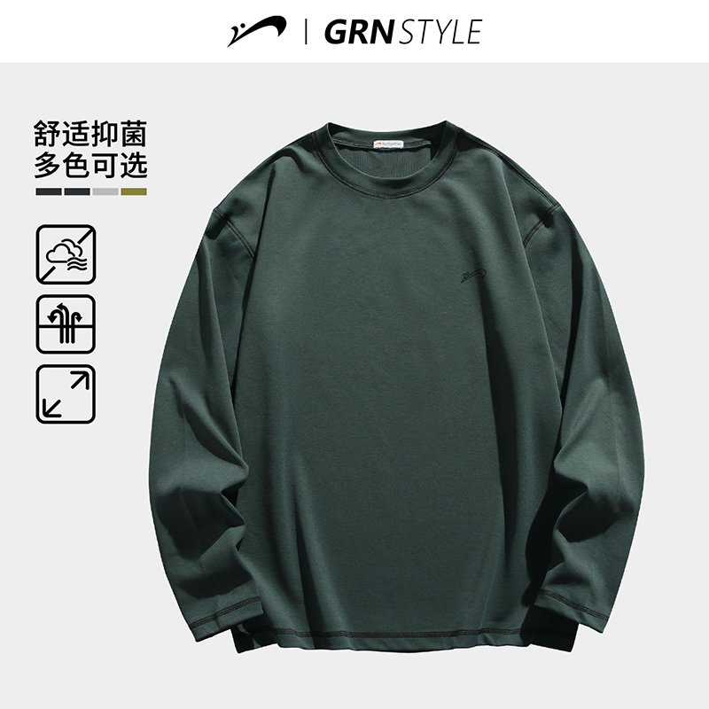 秋冬加绒长袖 男士 上衣 重磅休闲黑色圆领打底衫 回力卫衣男春秋新款