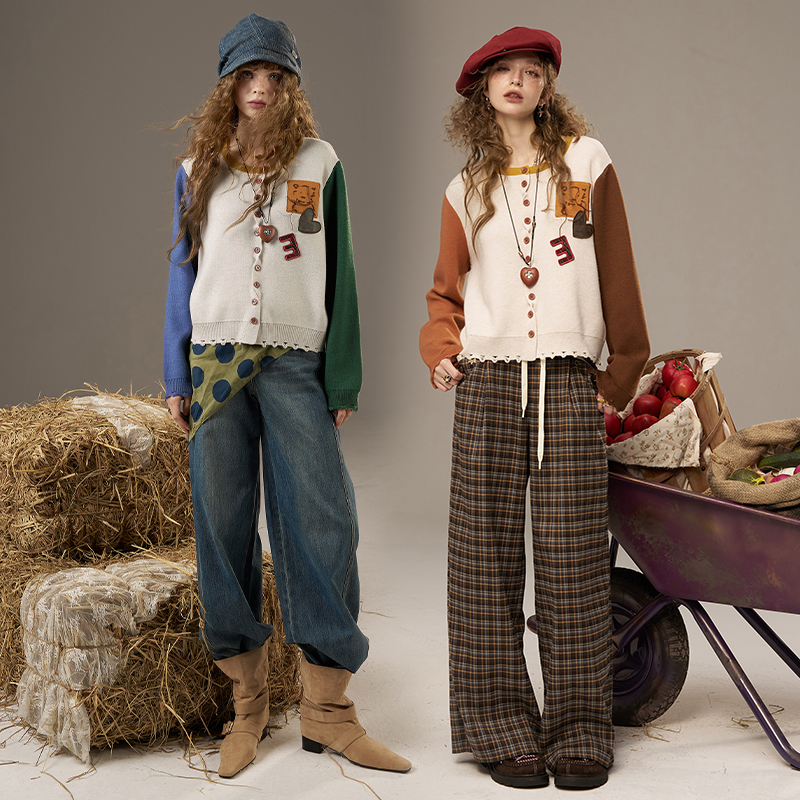 上衣女装 韩系设计感蝴蝶结假两件开衫 508036 秋季 三福毛衣2025新款