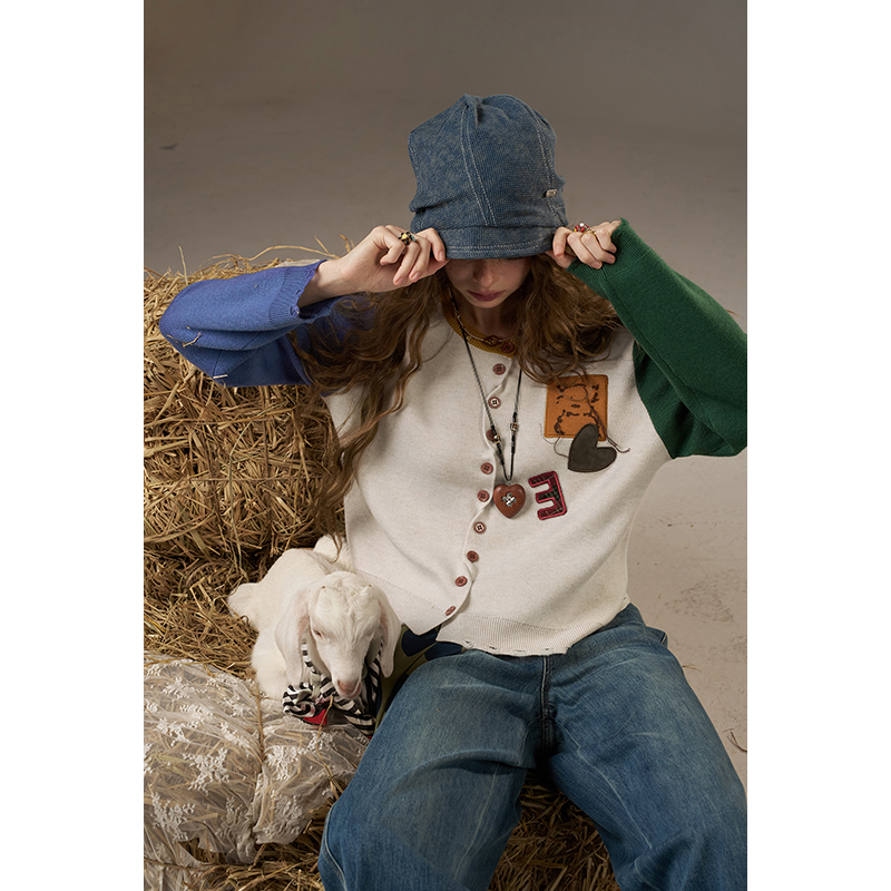 毛衣男爱心刺绣外套 基础V领针织开衫 查尔斯桃心 2025年秋冬新款