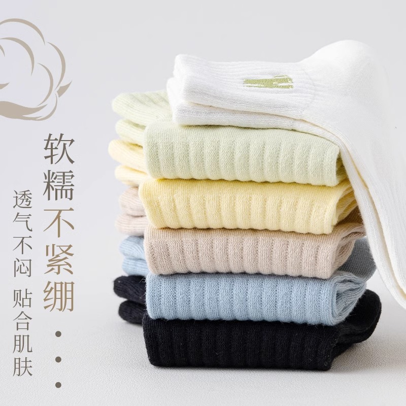诸暨袜子女春秋束腰中筒运动纯色棉吸汗透气防臭短袜四季 百搭秋天