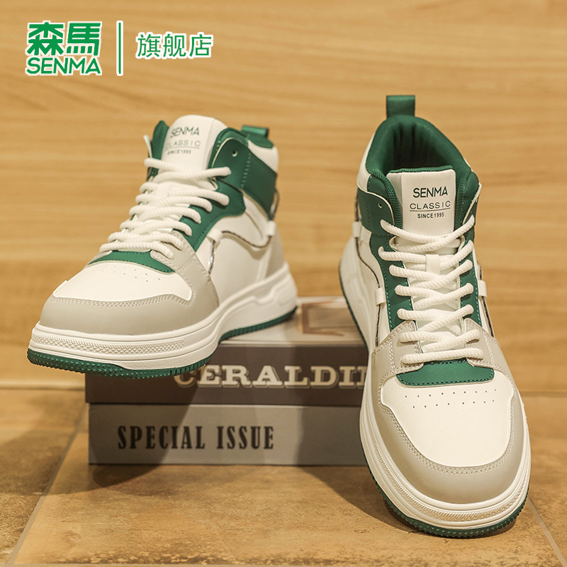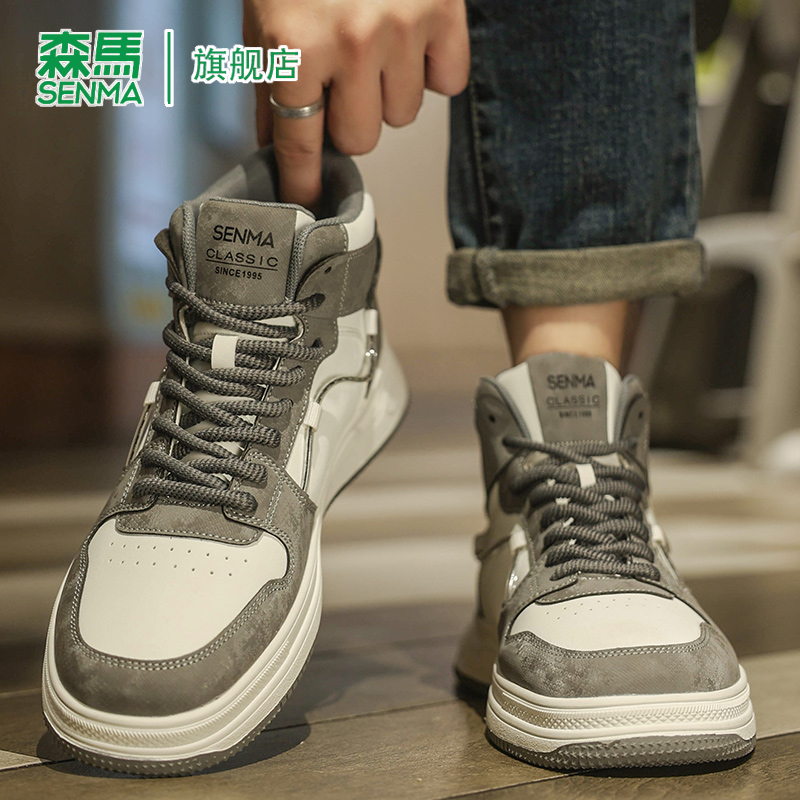 学生防滑厚底百搭运动潮鞋 森马男鞋 复古港风休闲高帮板鞋 新款 秋季