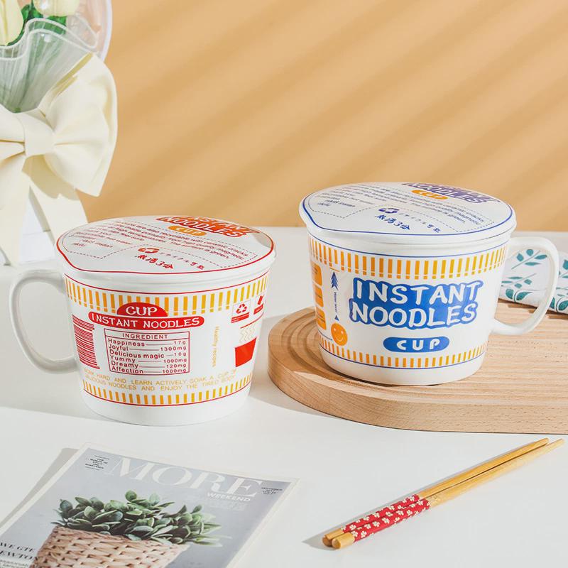 面宿舍学生方便专用碗儿童陶瓷饭 面带用盖大号碗装 日式 泡面
