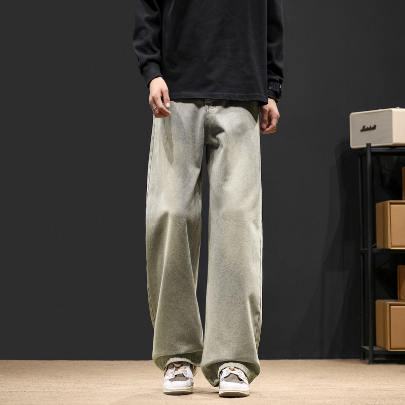 男士 潮牌直筒宽松阔腿休闲长裤 春秋季 美式 2025新款 回力浅蓝牛仔裤