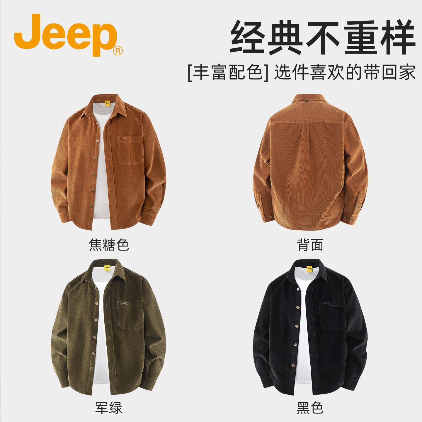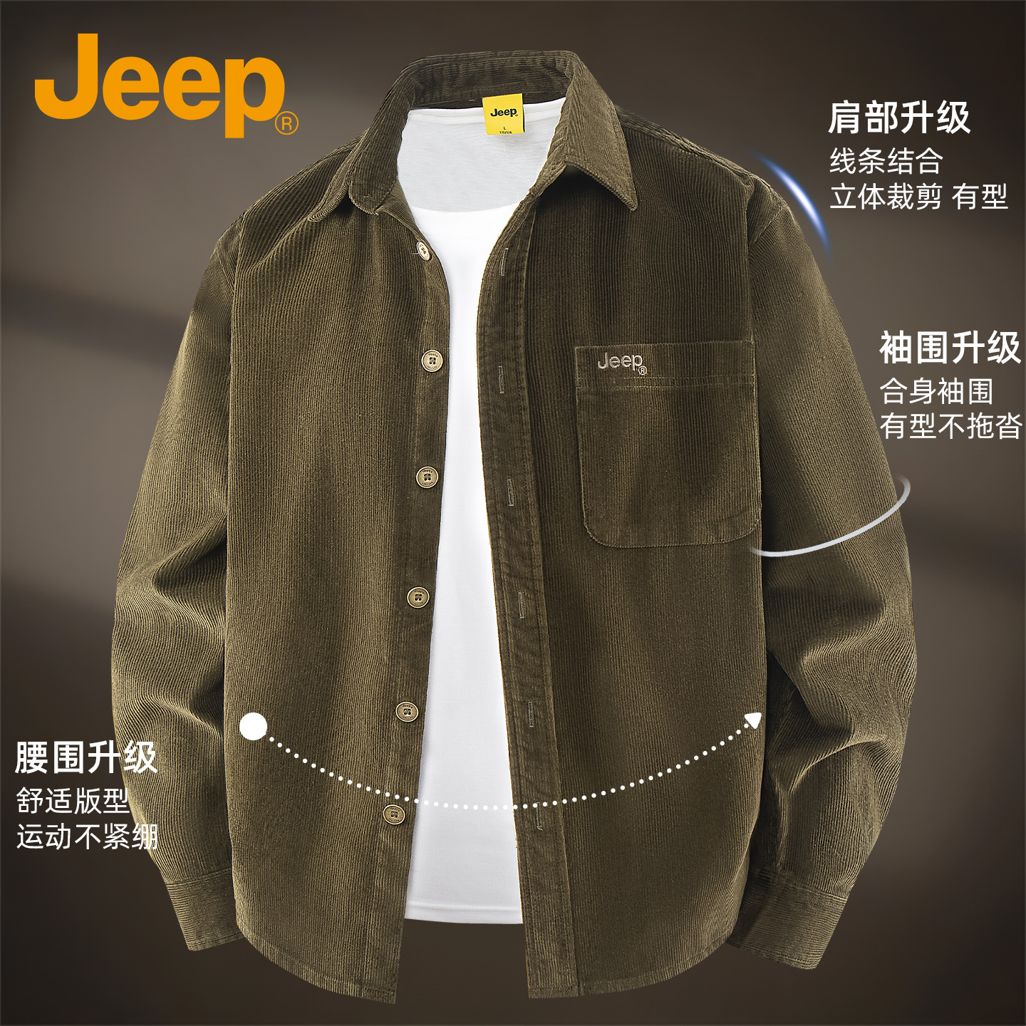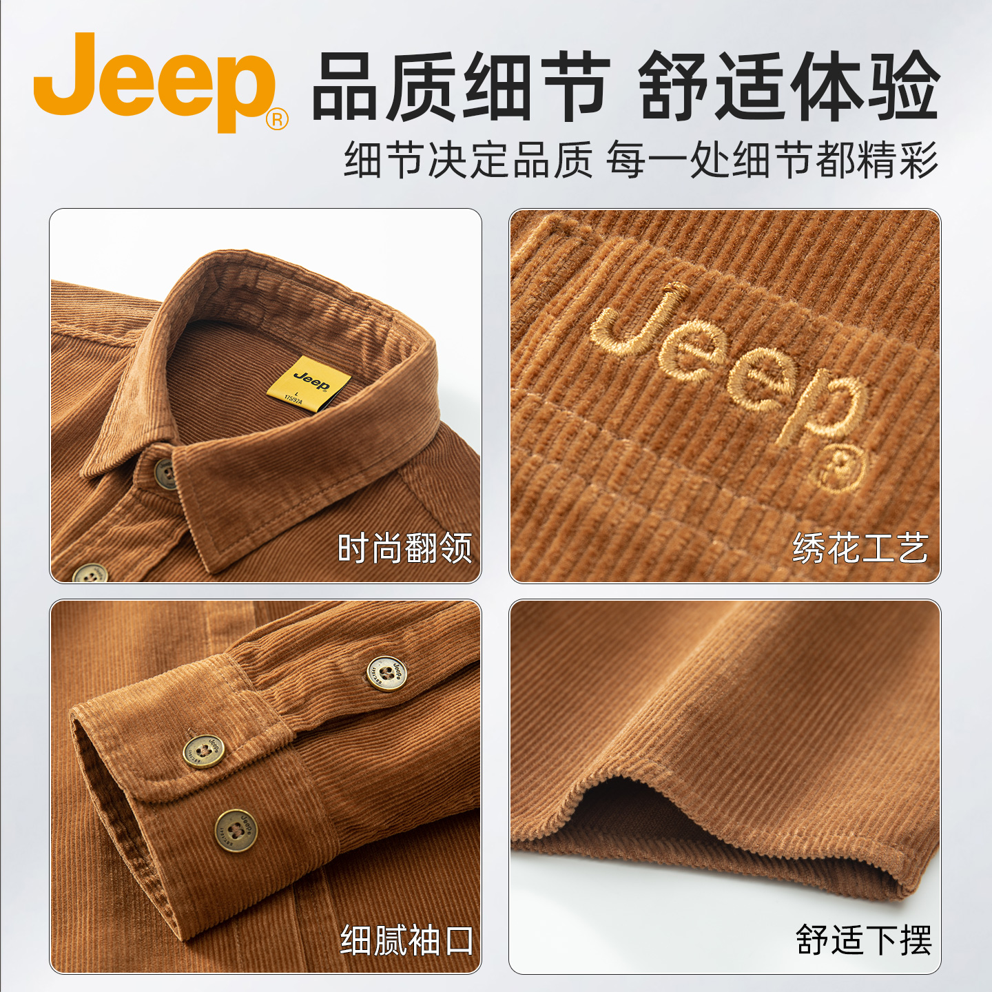 男秋冬季 衬衫 宽松大码 男士 JEEP 休闲衬衣官方正品 吉普灯芯绒长袖