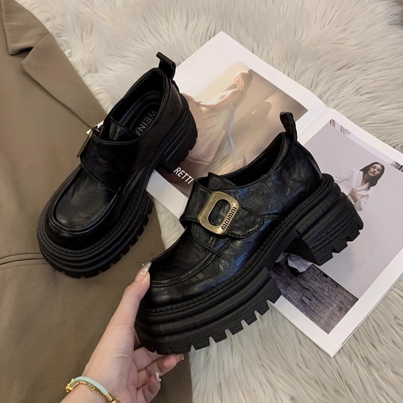 女2025新款 小皮鞋 秋季 百搭增高黑色jk单鞋 英伦风小皮鞋 厚底乐福鞋