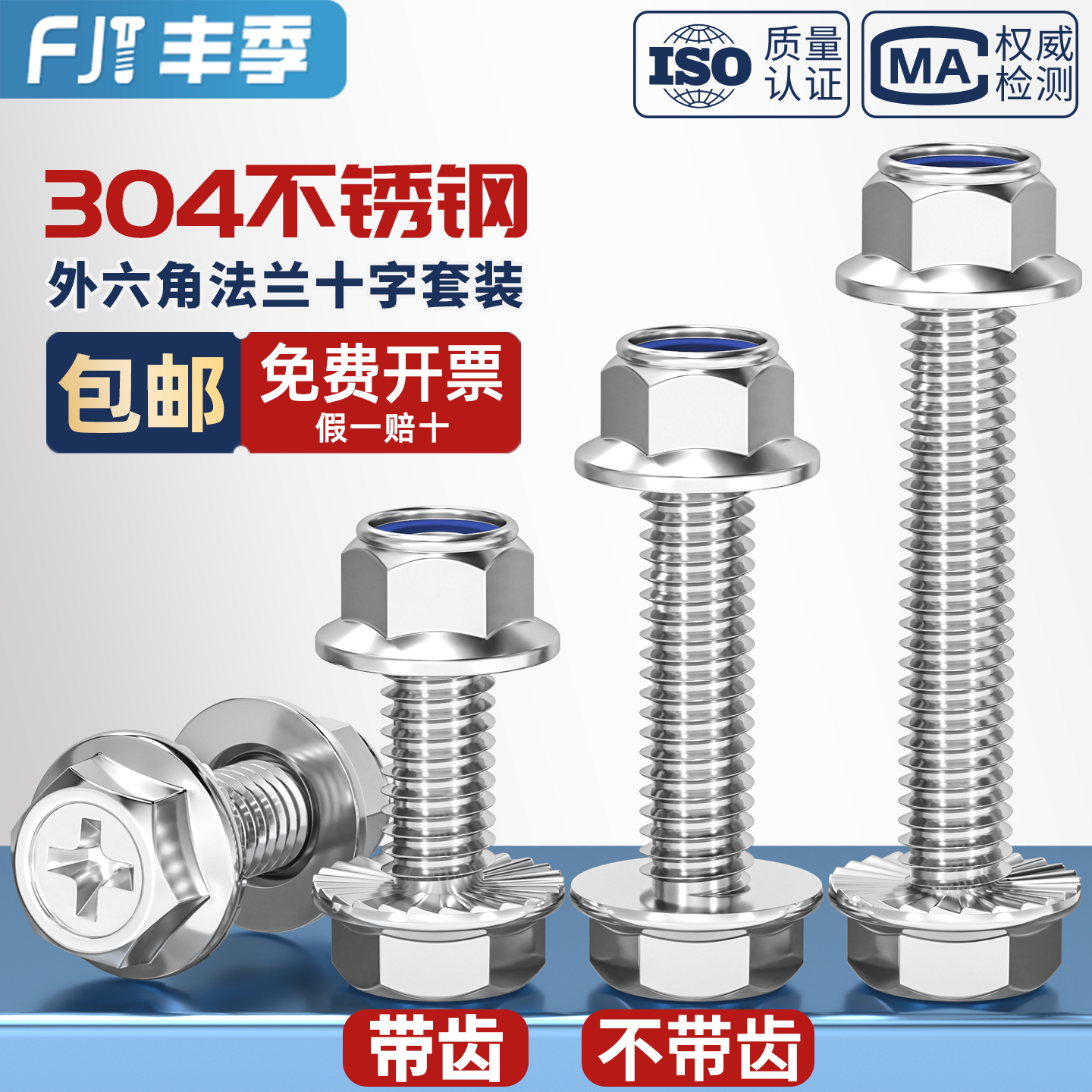 304不锈钢十字法兰面螺丝钉螺母组合套装 外六角螺栓防滑带垫 大全