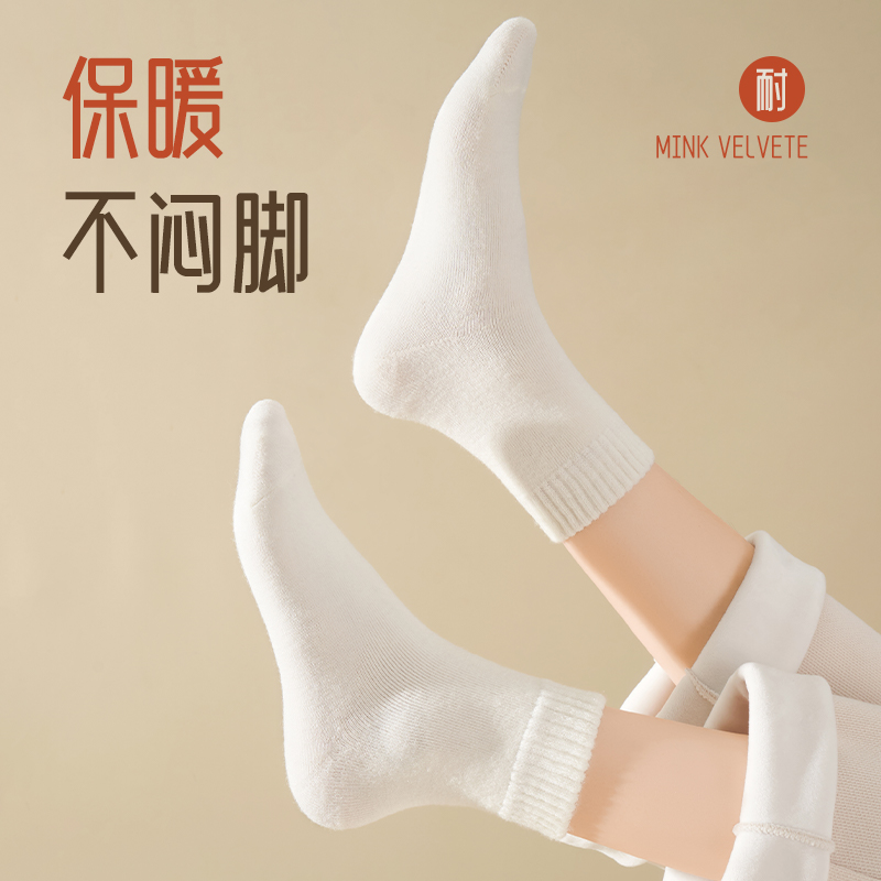 白色无骨秋冬堆堆袜 中筒袜纯棉月子袜2025新款 100%棉袜子女款 秋季