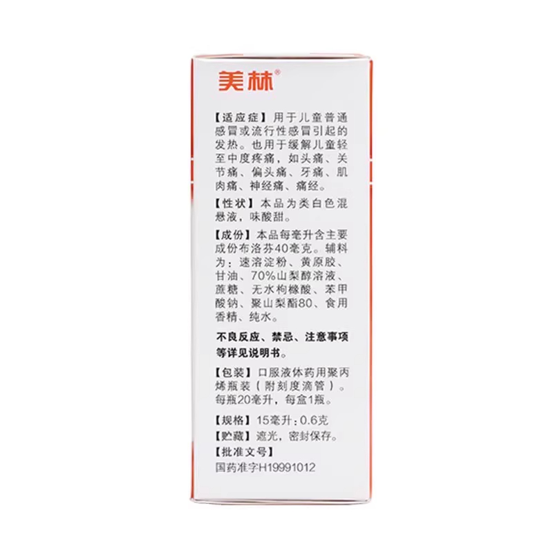 美林布洛芬混悬滴剂20ml美林婴幼儿退烧药感冒小儿发热流感原研药