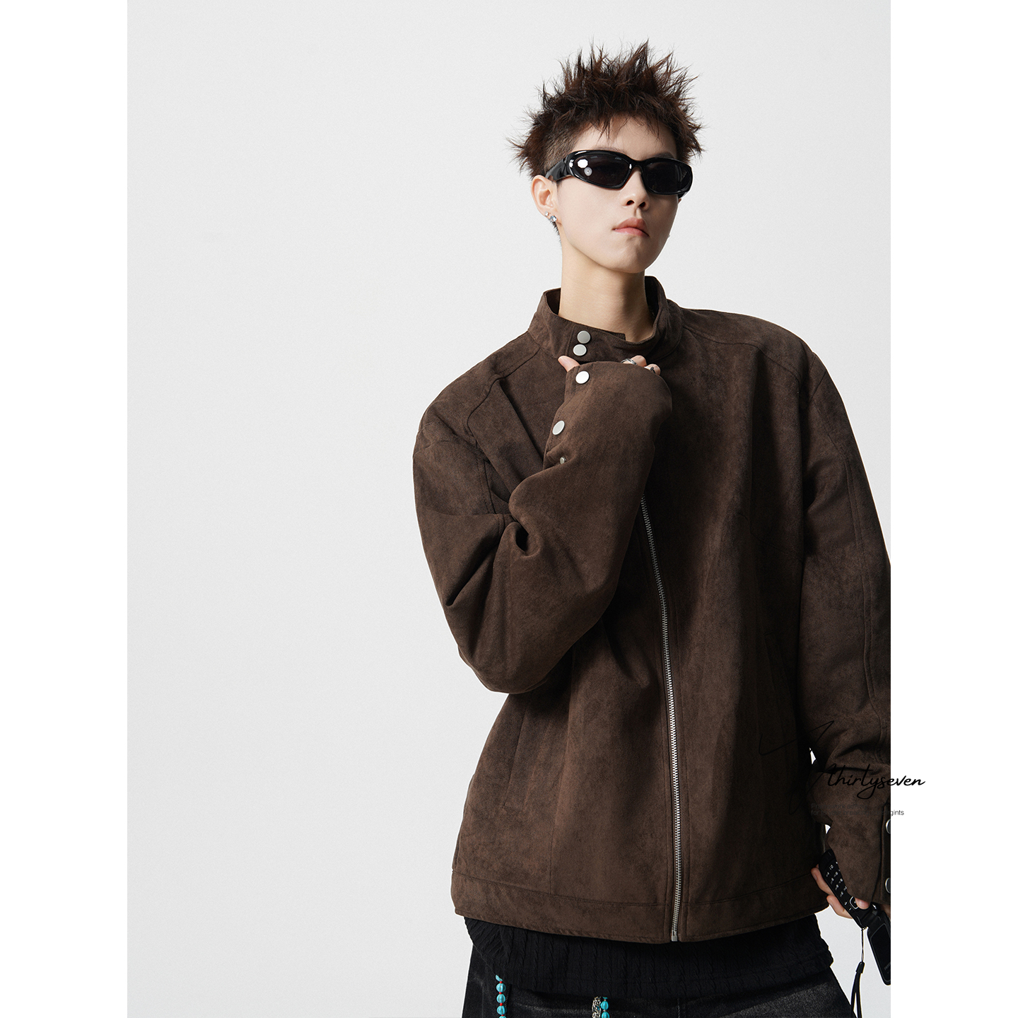 夹克上衣 重磅潮牌哈灵顿短款 V37美式 vintage麂皮绒立领外套男秋季