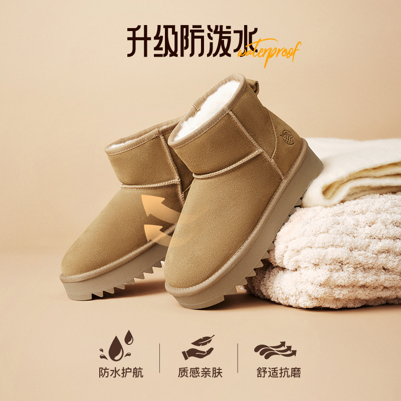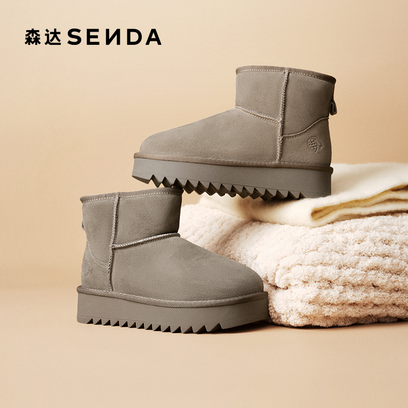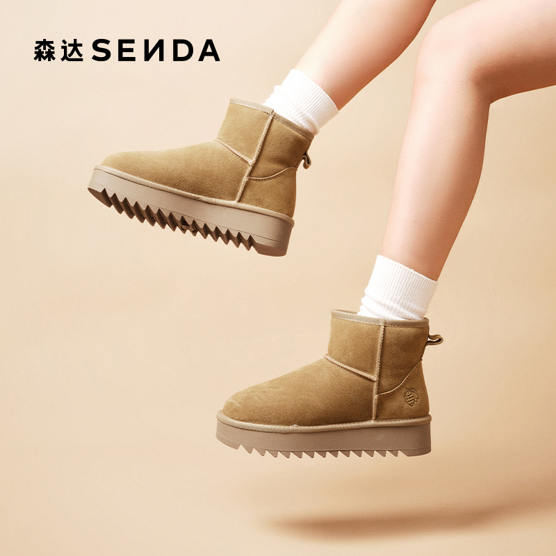 森达真皮羊毛雪地靴女25冬新加绒加厚保暖东北棉鞋 双11预售