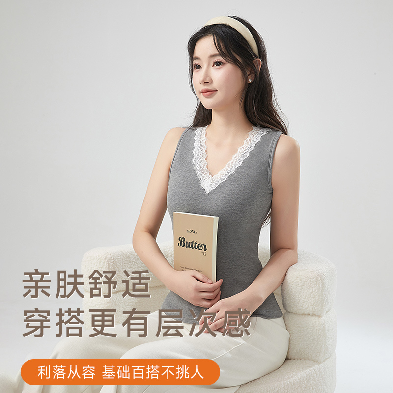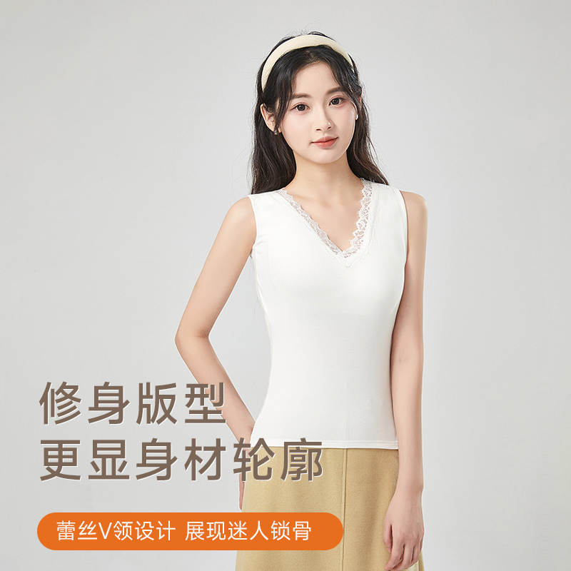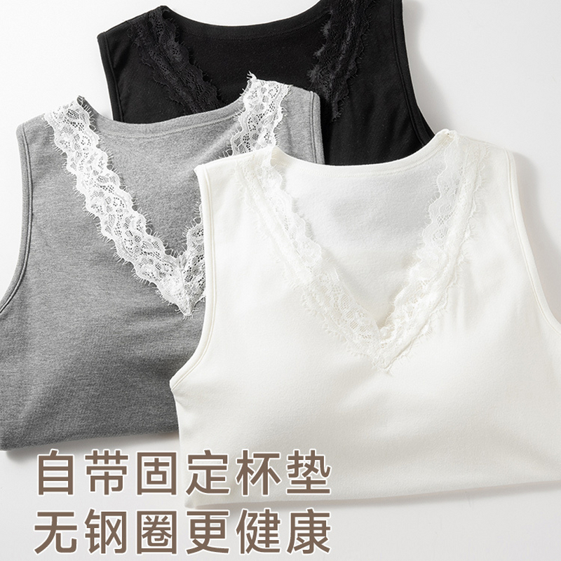 桑蚕丝保暖吊带背心女2025秋加绒加厚发热无痕自带胸垫一体内衣冬
