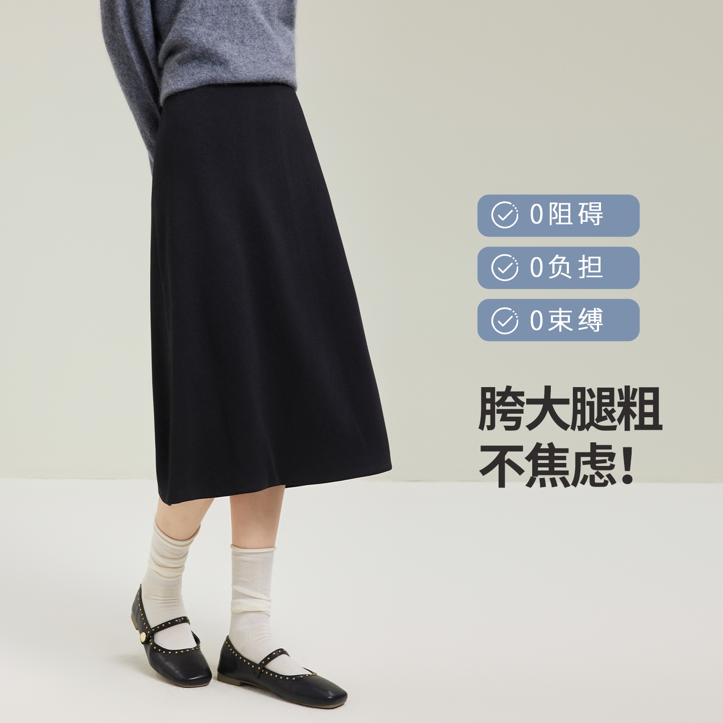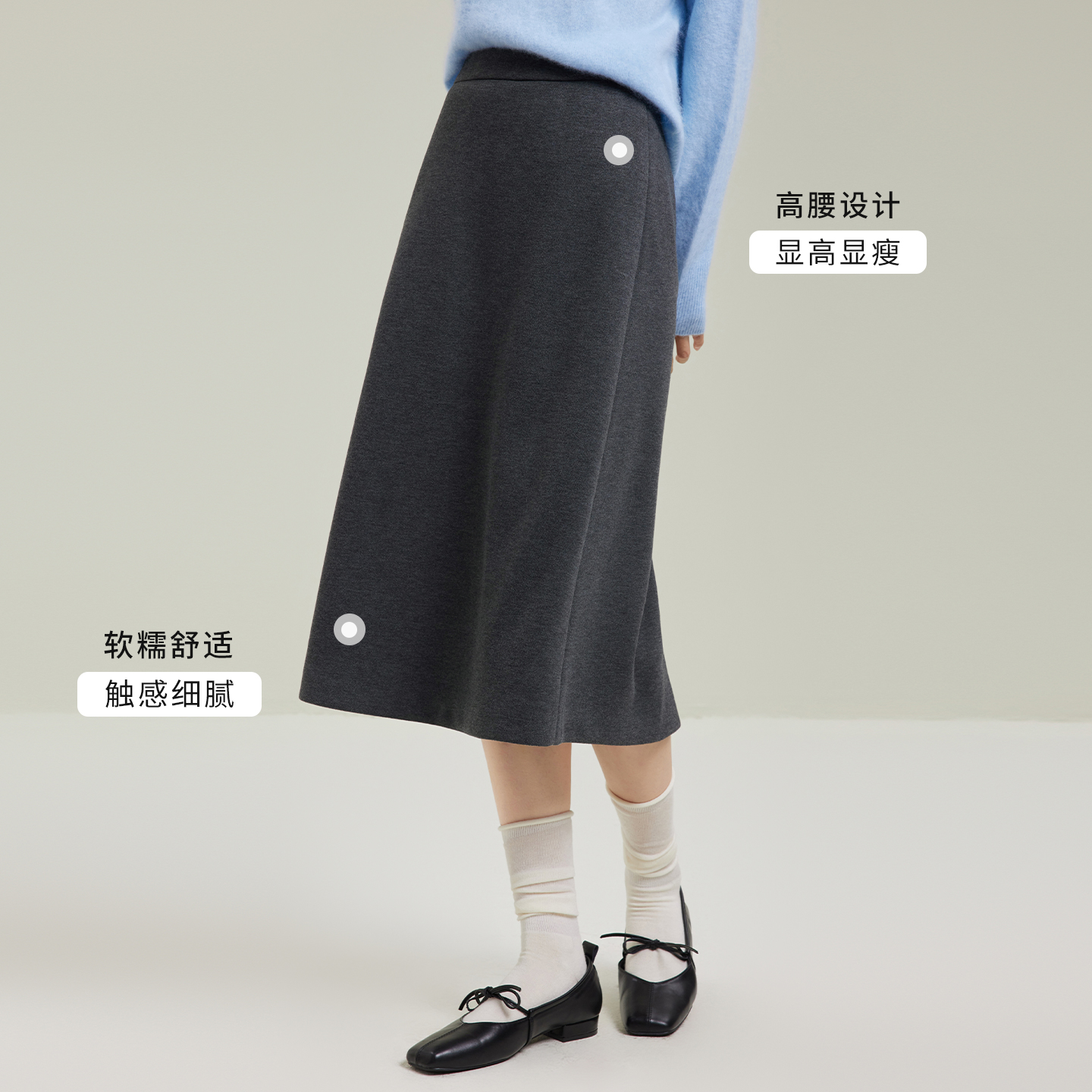 巨好看 中长款 a字半身裙子H 新款 班尼路灰色毛呢百褶裙女2025秋季