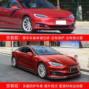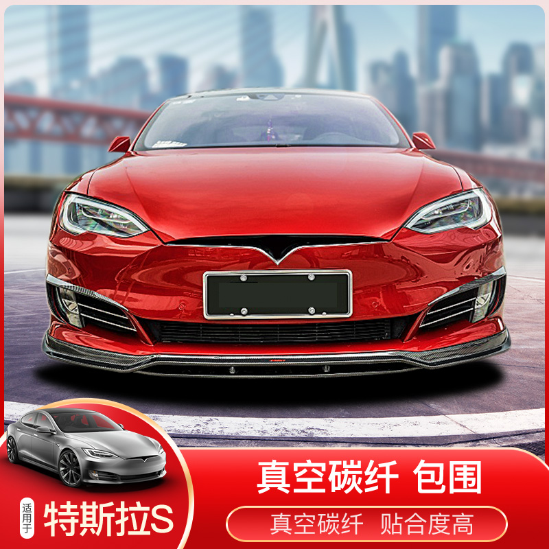 适用于特斯拉Model 碳纤维套件前唇侧裙风刀后扰流尾翼配件 S改装