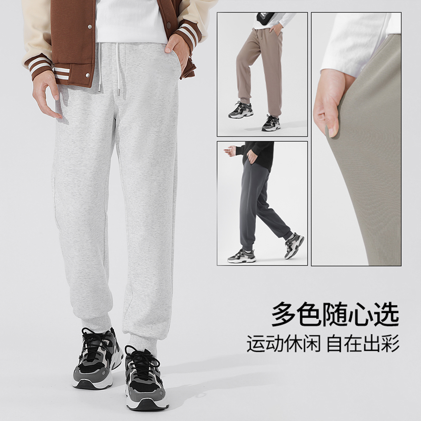 系带松紧宽松百搭休闲裤 鸭鸭羊毛蚕丝保暖卫裤 男士 新款 2025秋季