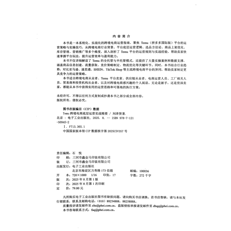 Temu跨境电商底层运营实战精要刘泽贤电子商务电子工业出版 社新华书店正版