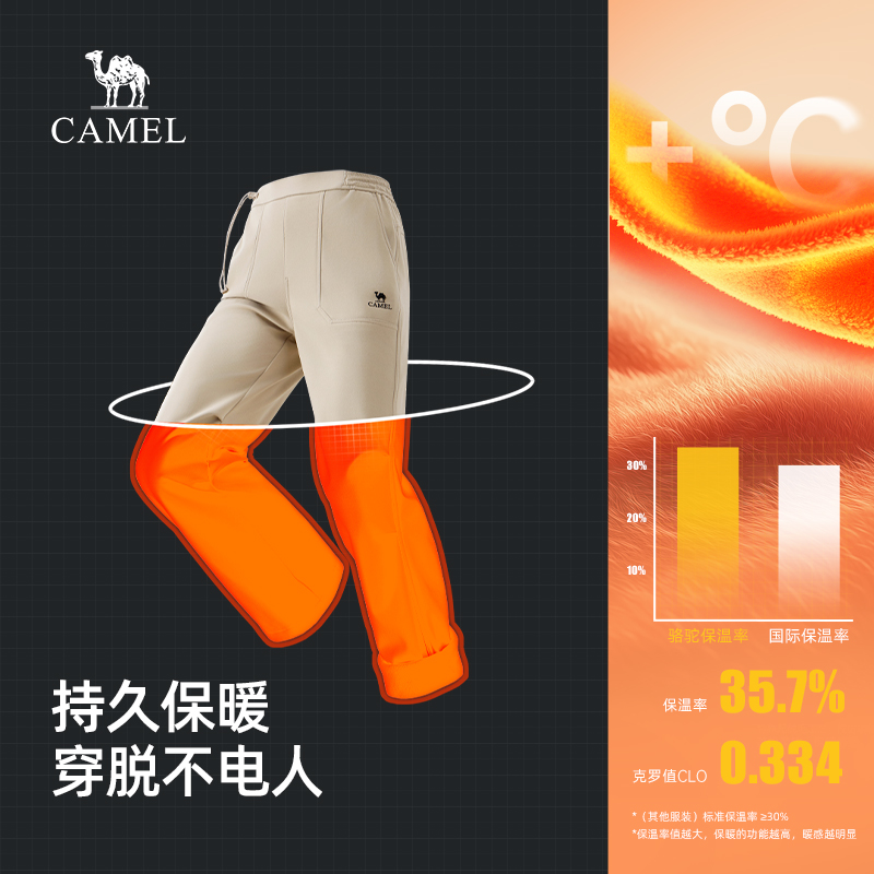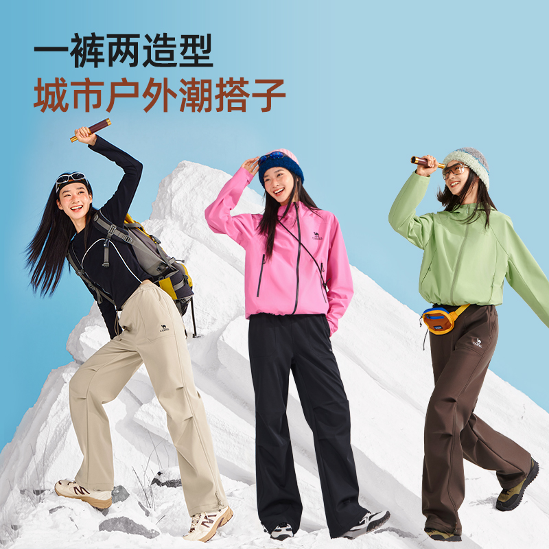 裤 Camel骆驼女装 户外休闲百搭加绒保暖工装 2025秋冬新款 梭织长裤