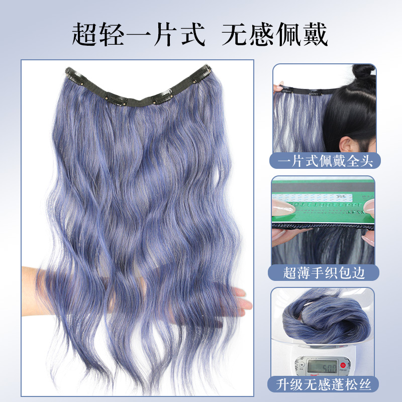 彩色假发片女超轻薄卷发片挑染卷发增发量自然蓬松挂耳染接发片
