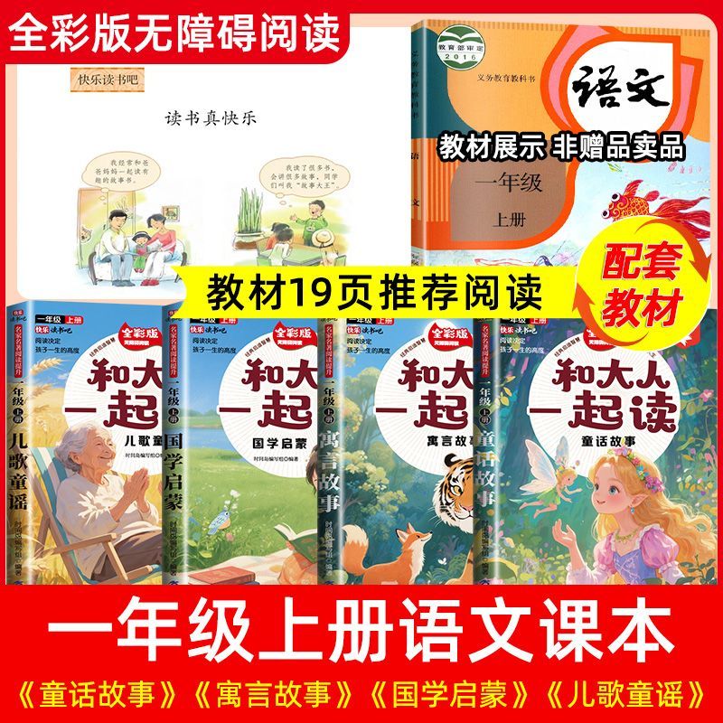 带拼音书籍人教版 适合1年级看 读读童谣和儿歌 一年级阅读课外书必读上册快乐读书吧读书真快乐老师推荐 和大人一起读全套4册注音版