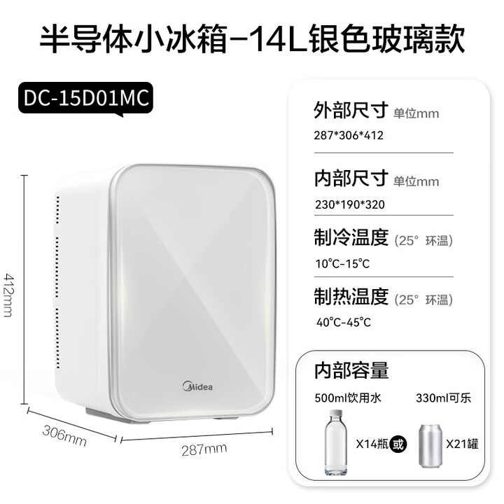 美 车载冰箱小型迷你车家两用冷暖箱制冷加热保温户外家居14L