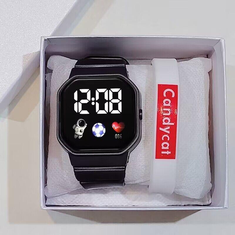 科技感原宿风电子表 方形硅胶运动手表 LED高颜值太空人手表