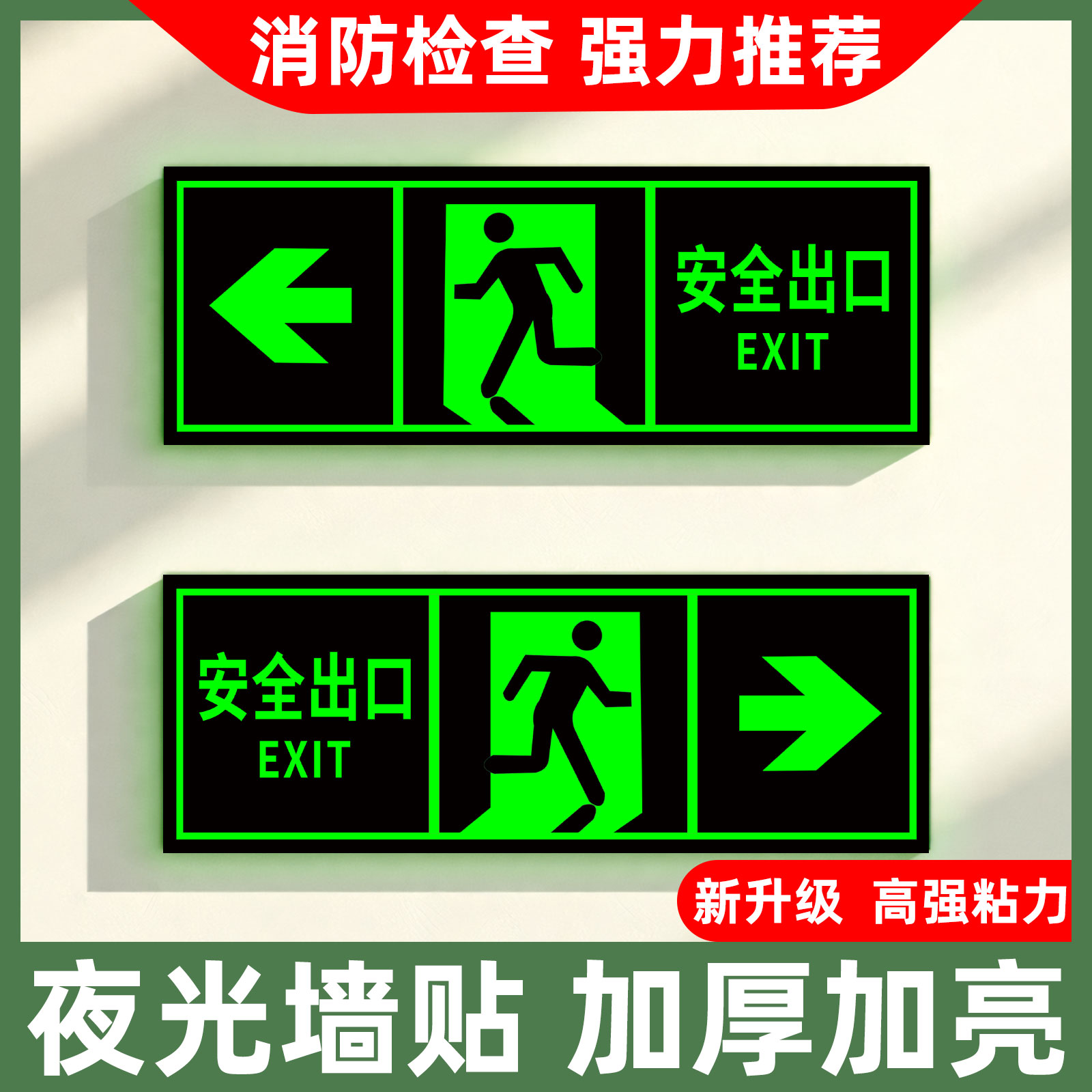 安全出口标识牌荧光贴纸高级反光贴楼道楼层安全出口地贴安全通道指示牌地贴警示牌小心地滑提示牌夜光免接电