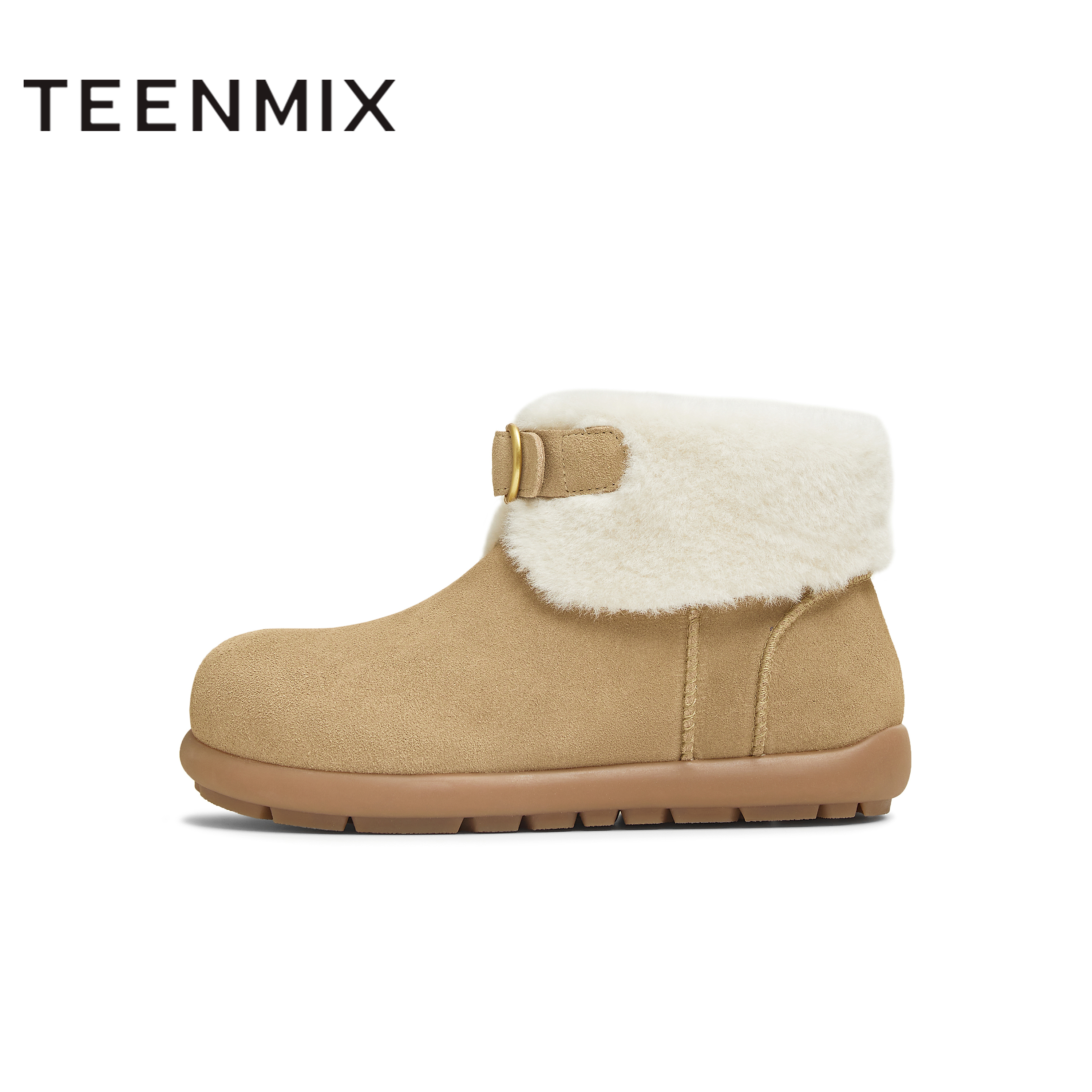 天美意复古厚底加绒保暖雪地靴棉鞋 CER41DD5 女休闲短靴2025冬新款