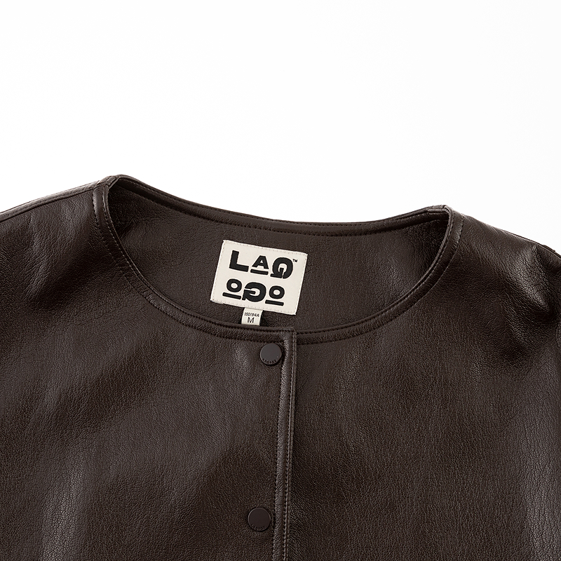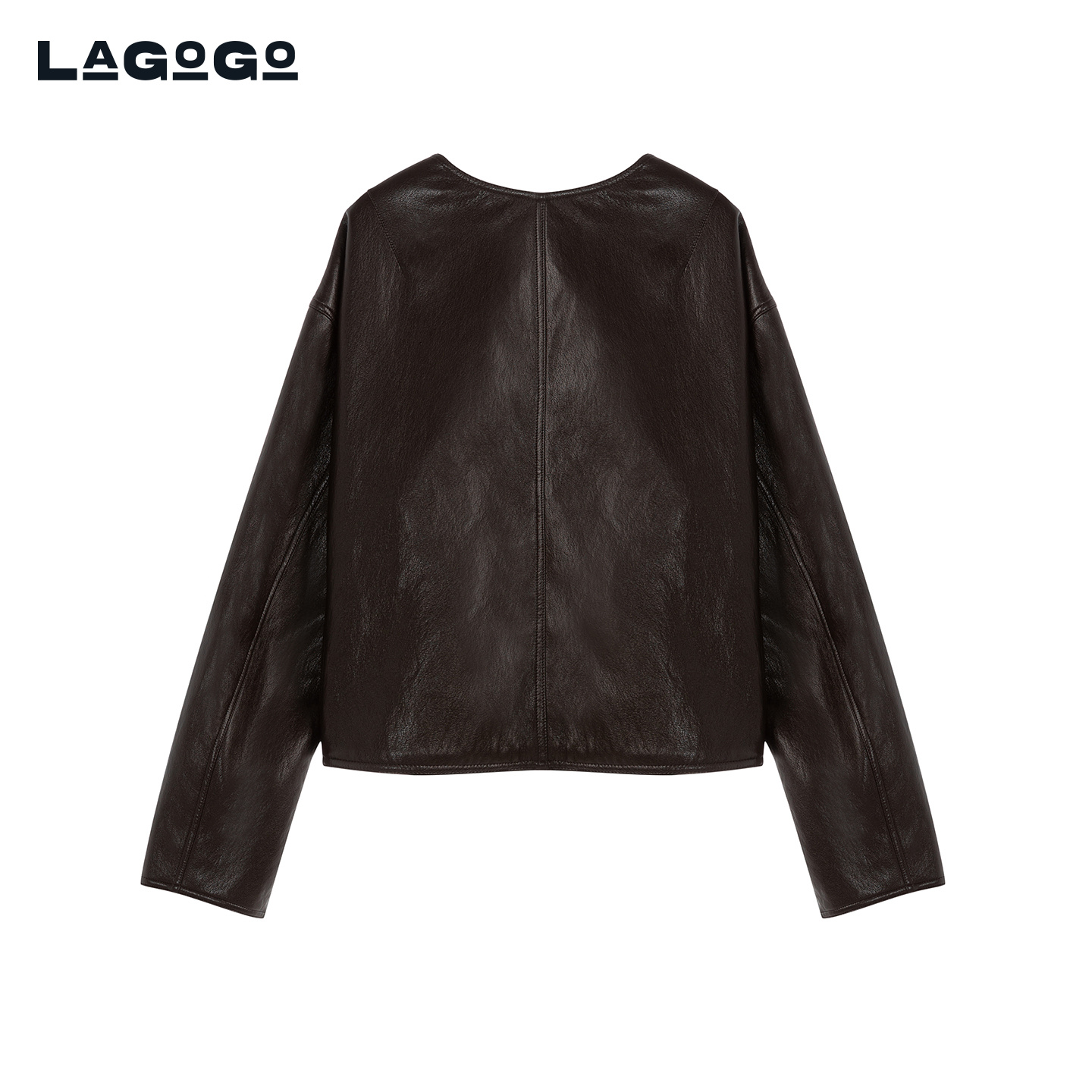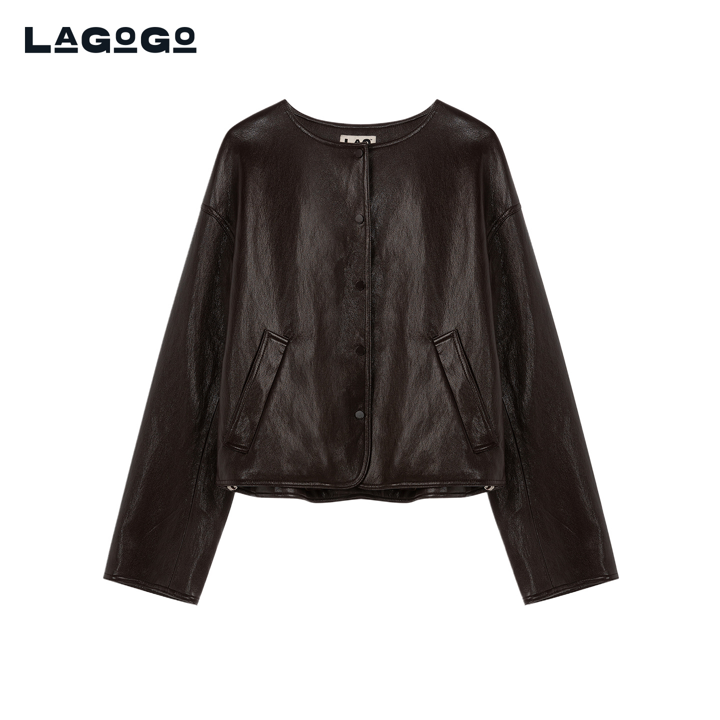 LAGOGO巴恩风落肩气质PU皮外套女拉谷谷2025秋新款 上衣OCRR138D46