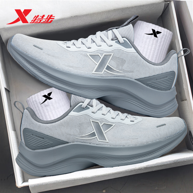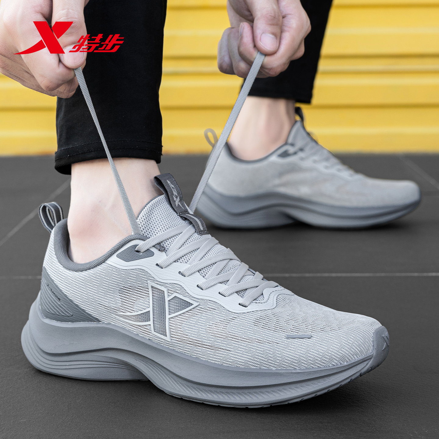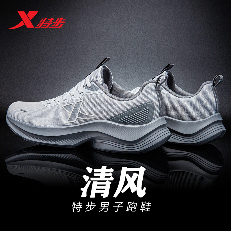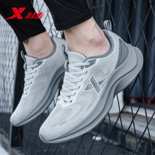 皮面防泼水爸爸减震网面休闲鞋 特步跑步鞋 黑色运动鞋 秋冬新款 男鞋