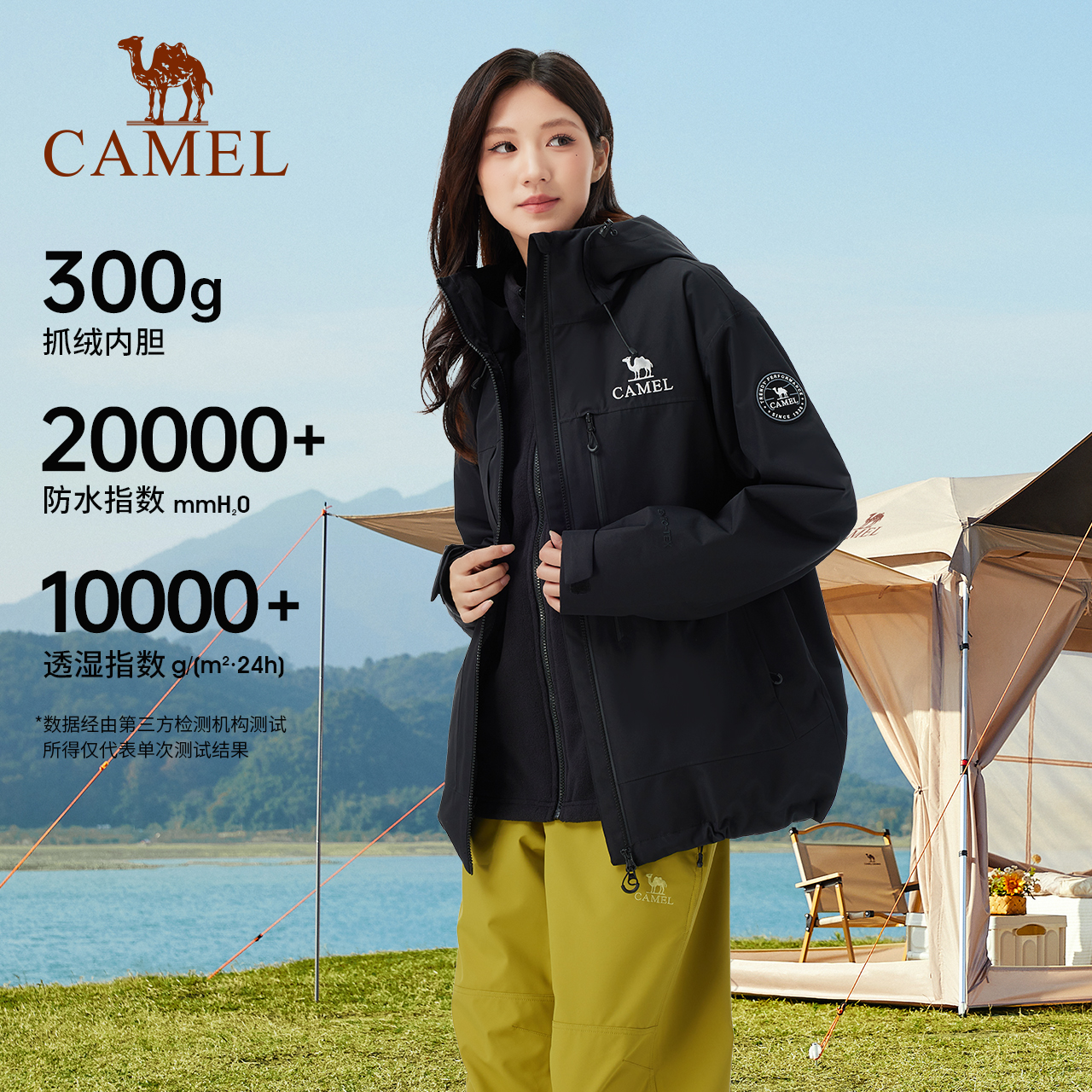 男 月影黄外套女户外防水登山服装 骆驼雨神冲锋衣2.0版 三合一新款