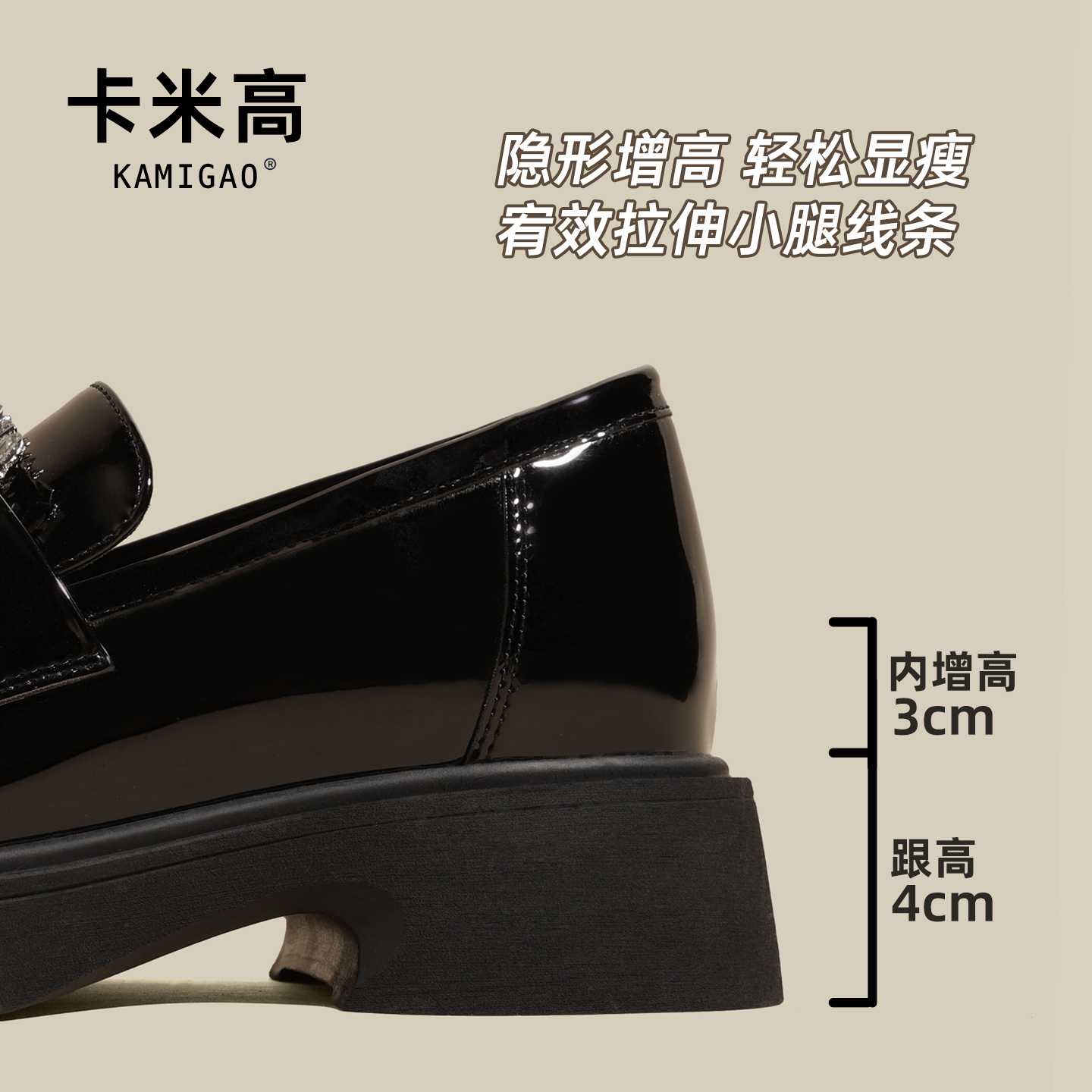 子 黑色厚底百搭小个子通勤皮鞋 7cm内增高乐福单鞋 女2025秋冬新款