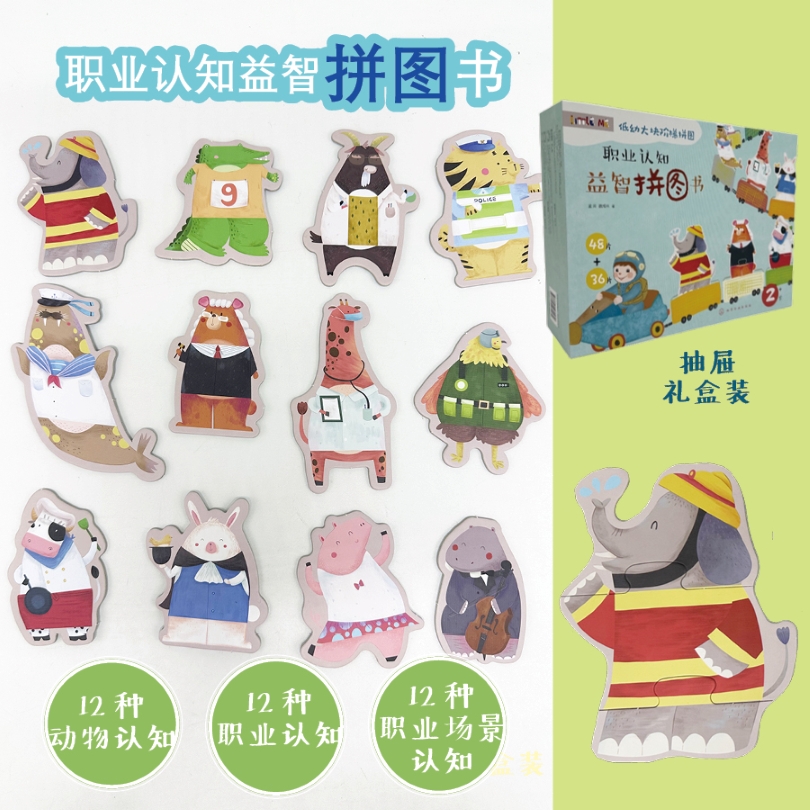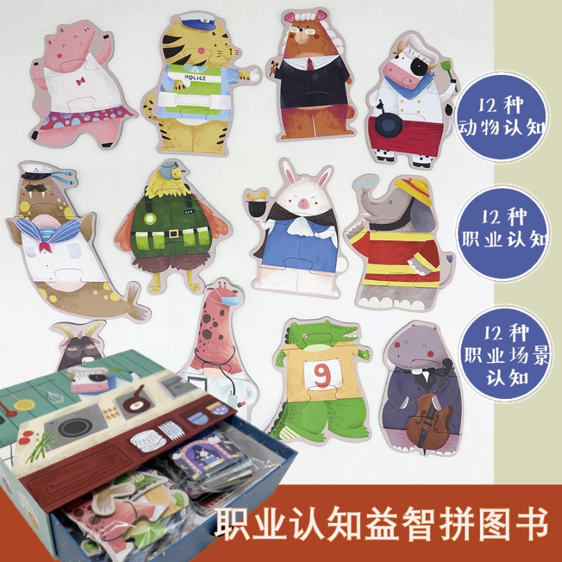低幼大块阶梯拼图 7岁宝宝儿童早教幼儿认知动物职业装 扮场景拼图书 送人礼物 抽屉礼盒装 锻炼孩子动手能力 职业认知益智拼图书