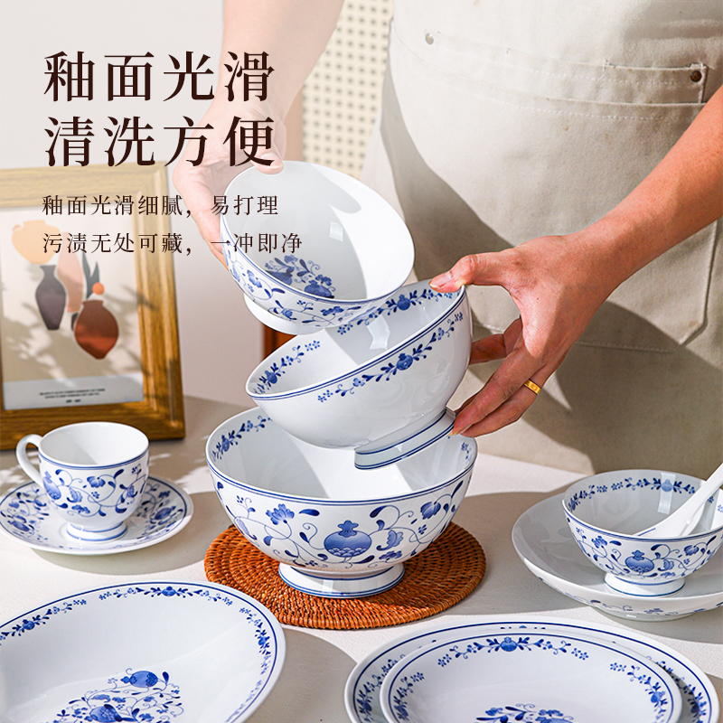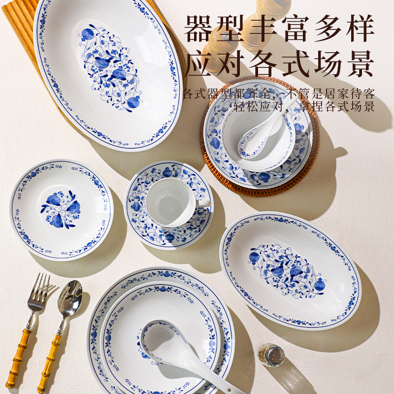乔迁新居碗盘筷 碗碟盘子碗具日式 釉下彩陶瓷餐具套装 家用2025新款