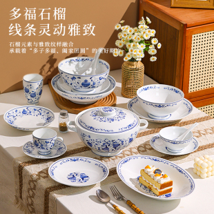 高级感碗碟套装 家用陶瓷盘子釉下彩餐具碗盘轻奢高档米饭碗碗具