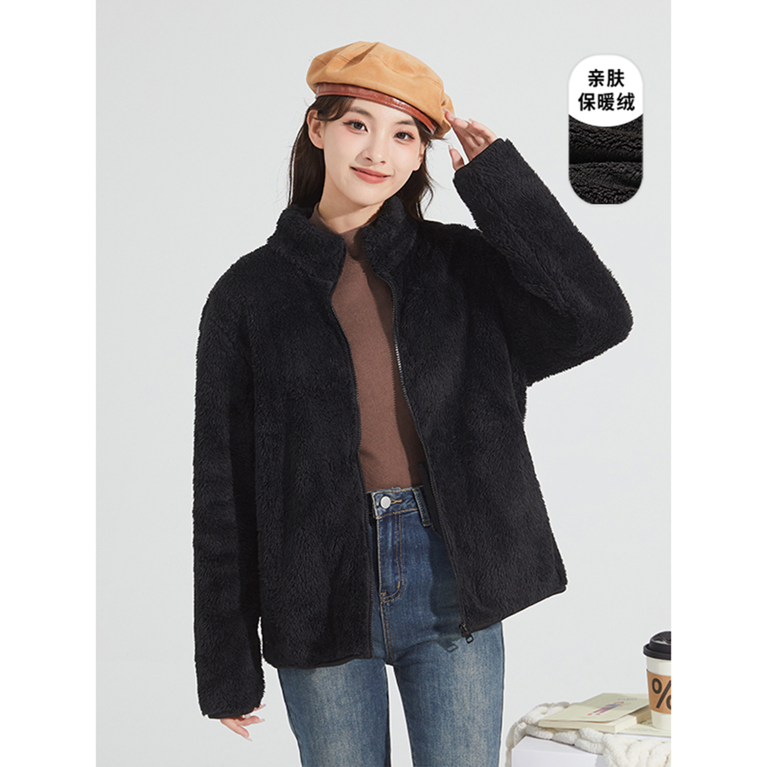 森马外套女含羊毛毛呢夹克优雅白色小香风2024新款 圆领上衣 冬季