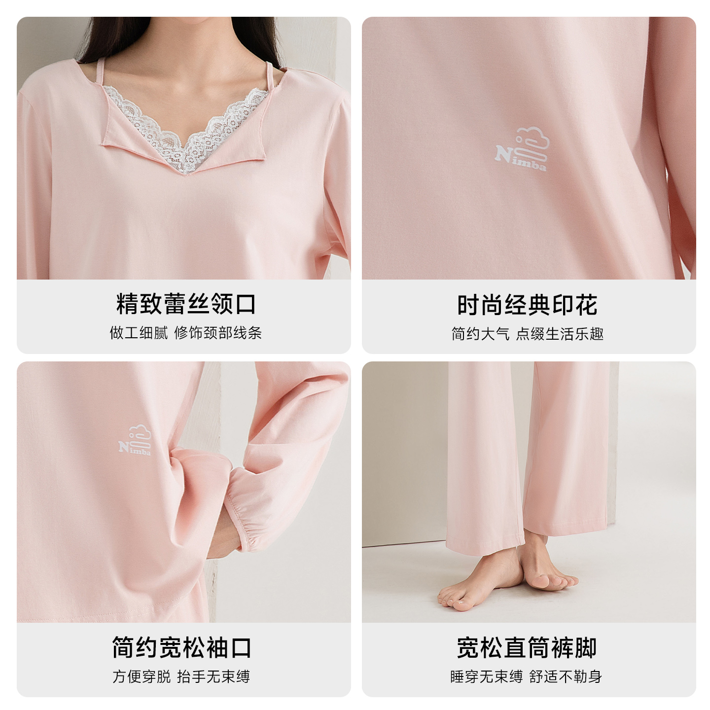 精致蕾丝高级感贵妇家居服套装 猫人秋季 2025新款 纯棉长袖 睡衣女款