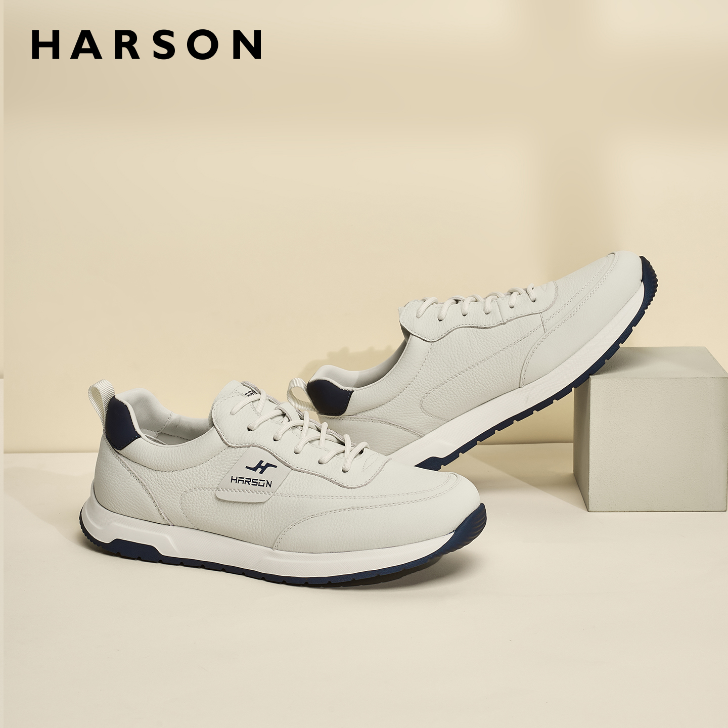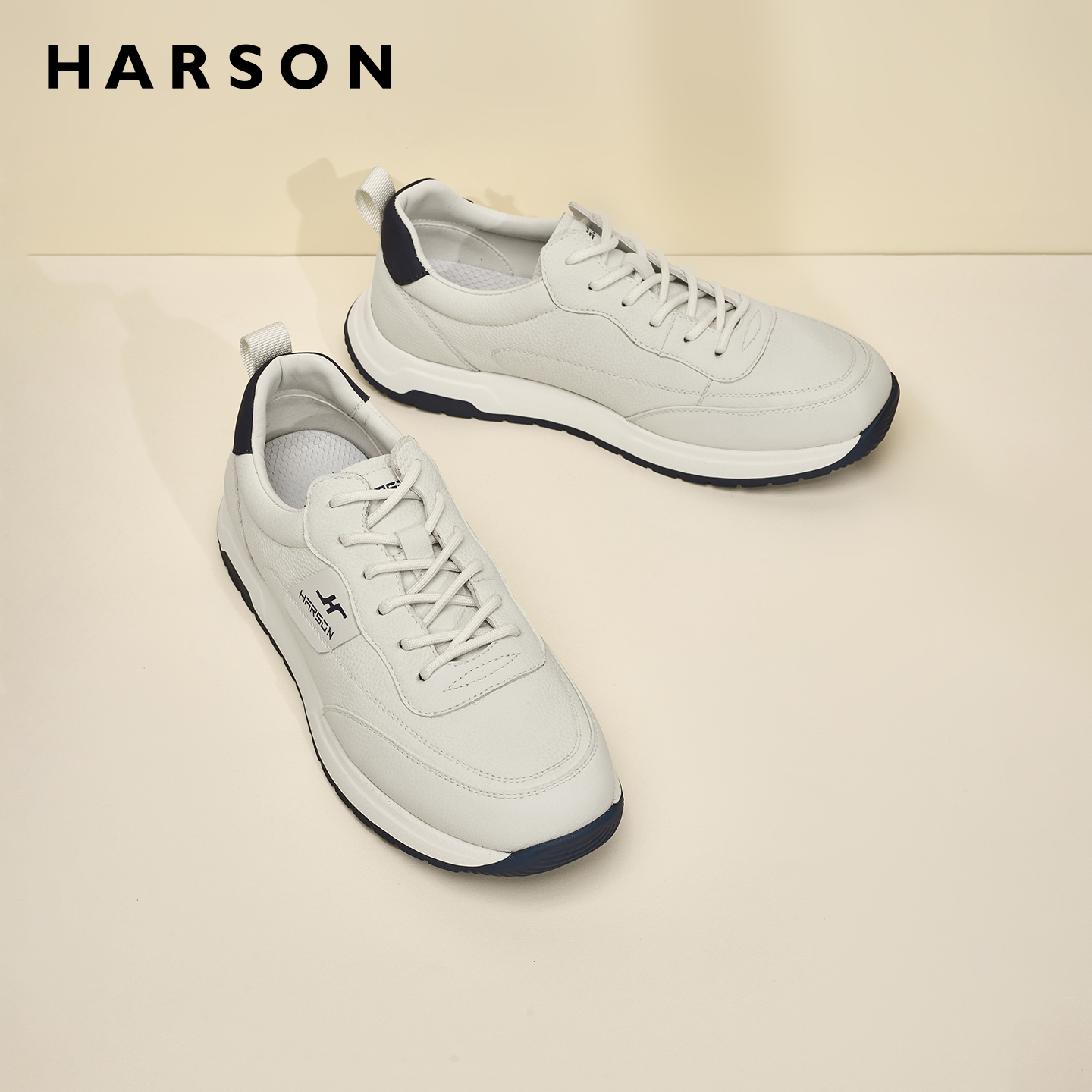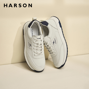 复古慢跑鞋 男款 轻便皮鞋 秋季 男 休闲鞋 新款 男士 哈森男鞋 阿甘小白鞋