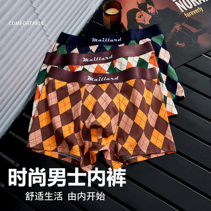 格子印花男士 平角四角短裤 内裤 潮流个性 男生纯棉透气2025新款 时尚
