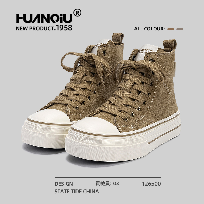 原创好看潮鞋 环球高帮帆布鞋 百搭厚底增高休闲板鞋 秋季 女2025新款