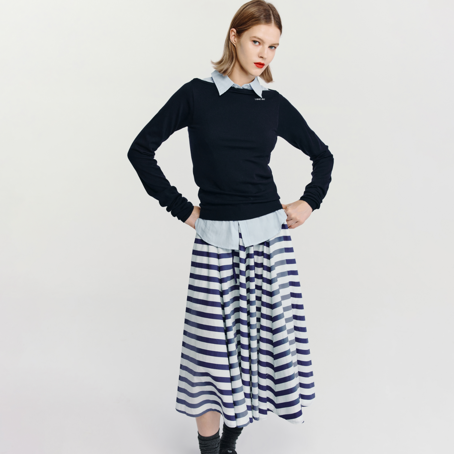 HAVVA一字领堆堆袖 女士上衣2025年秋季 T恤舒适修身 5025 针织衫