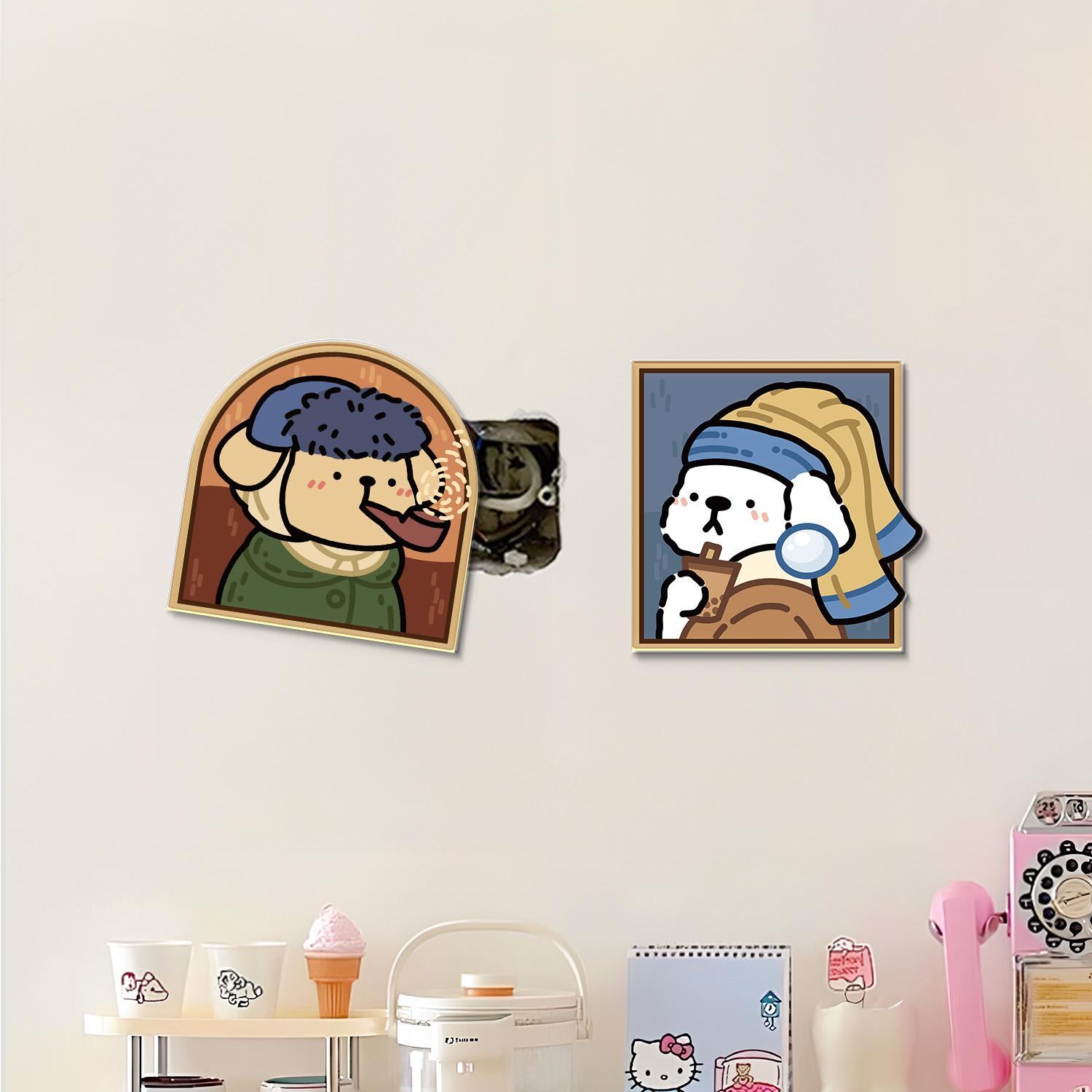 可爱小狗墙面遮丑装 饰品 饰墙贴亚克力窟窿补洞贴画卧室墙面改造装